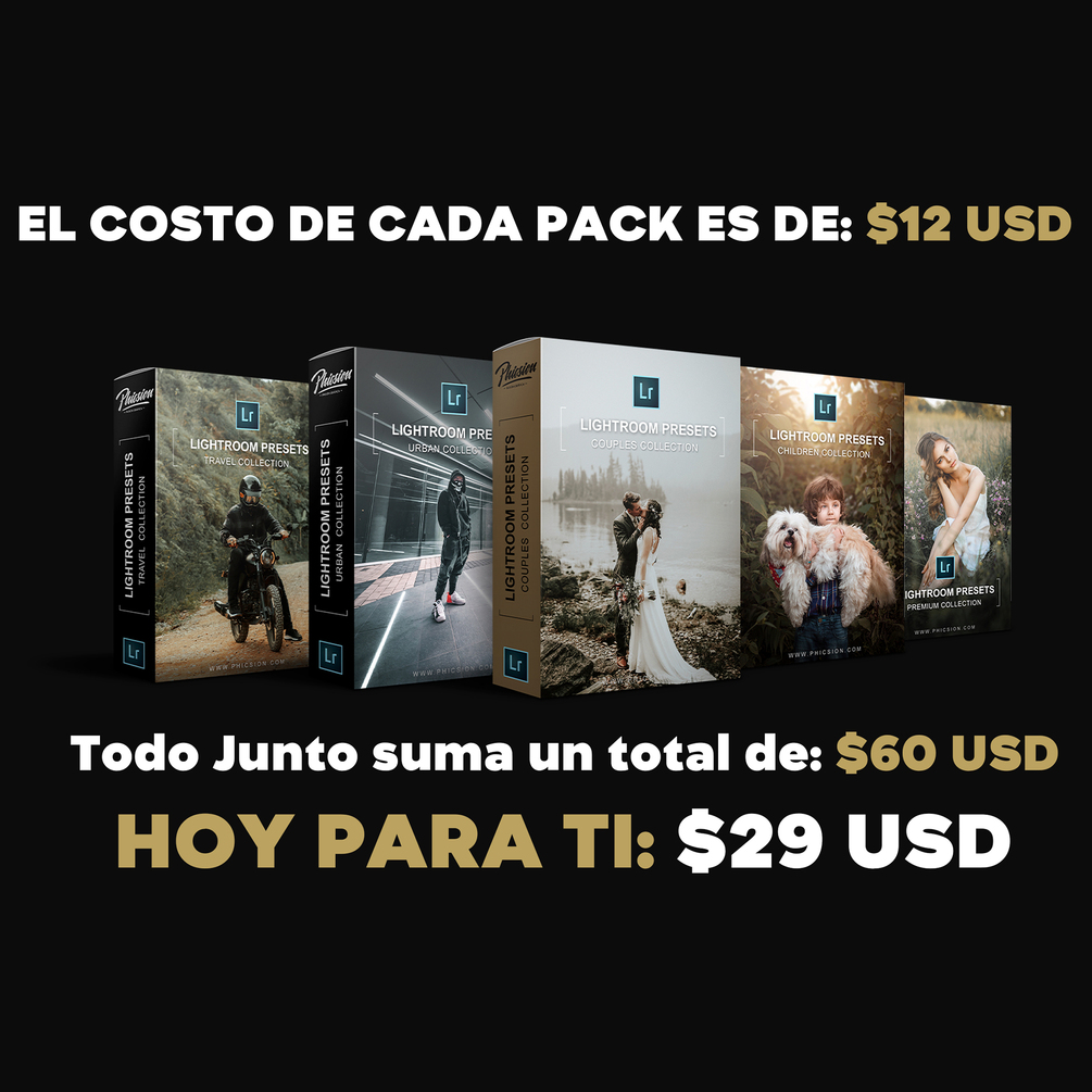 Adquiere todos mis presets por un precio especial y consigue fotos sorprendentes con un par de clicks.